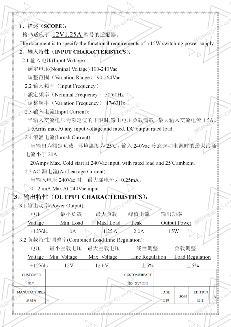 電源規(guī)格書